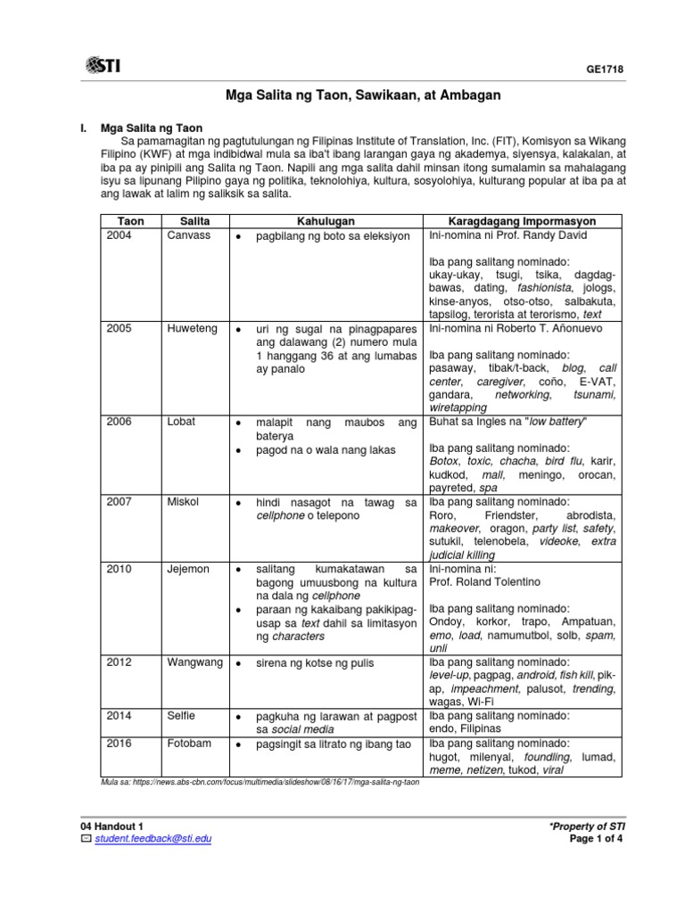 Zapra 2005 viii ang Sawikaan ay isang masinsinang talakayan para piliin ang pinakanatatanging salitang namayani sa diskurso ng. Pagpili sa Salita ng Taon. ANG PAMANTAYAN SA PAGPILI NG SALITA NG TAON 1 kabuluhan ng salita sa buhay nating mga Filipino ato pagsalamin nito ng katotohanan o bagong pangyayari sa ating lipunan.