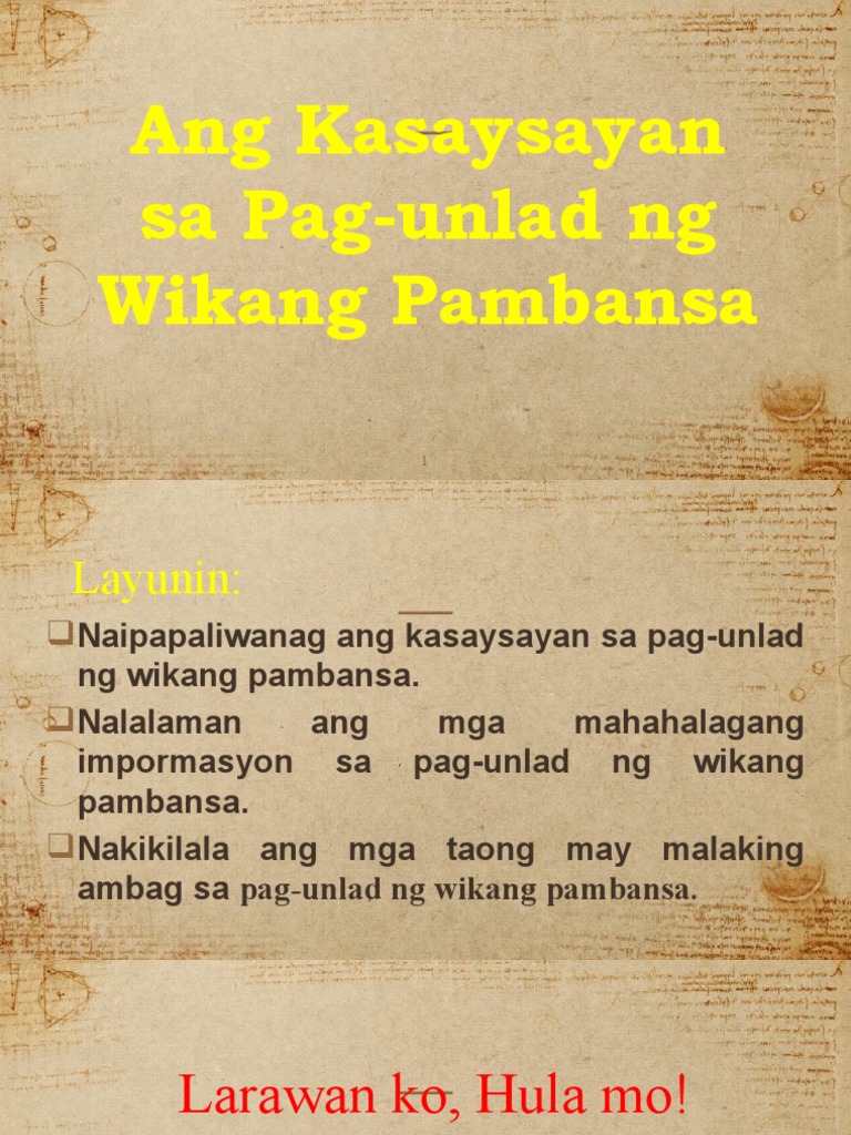 Kasaysayan Sa Pag Unlad Ng Wikang Pambansa